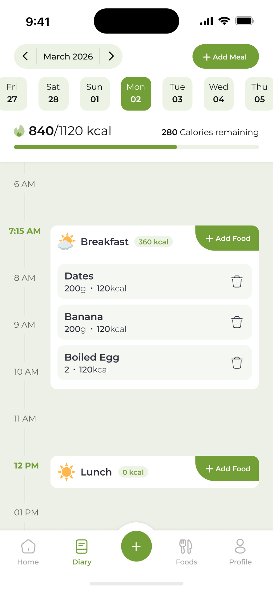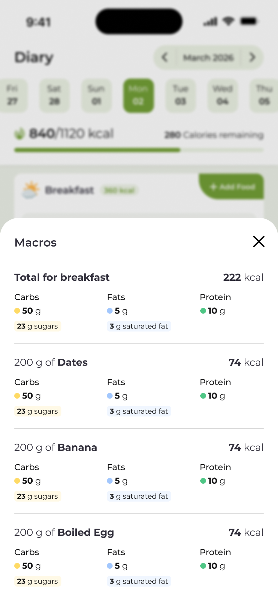 EatPer makes it easy to see exactly what you're eating without any stress. Log meals in seconds, whether it's breakfast on the go, a packed lunch, or a quick snack. No complicated setups, no distractions—just simple tracking that fits your life. arget every single day.